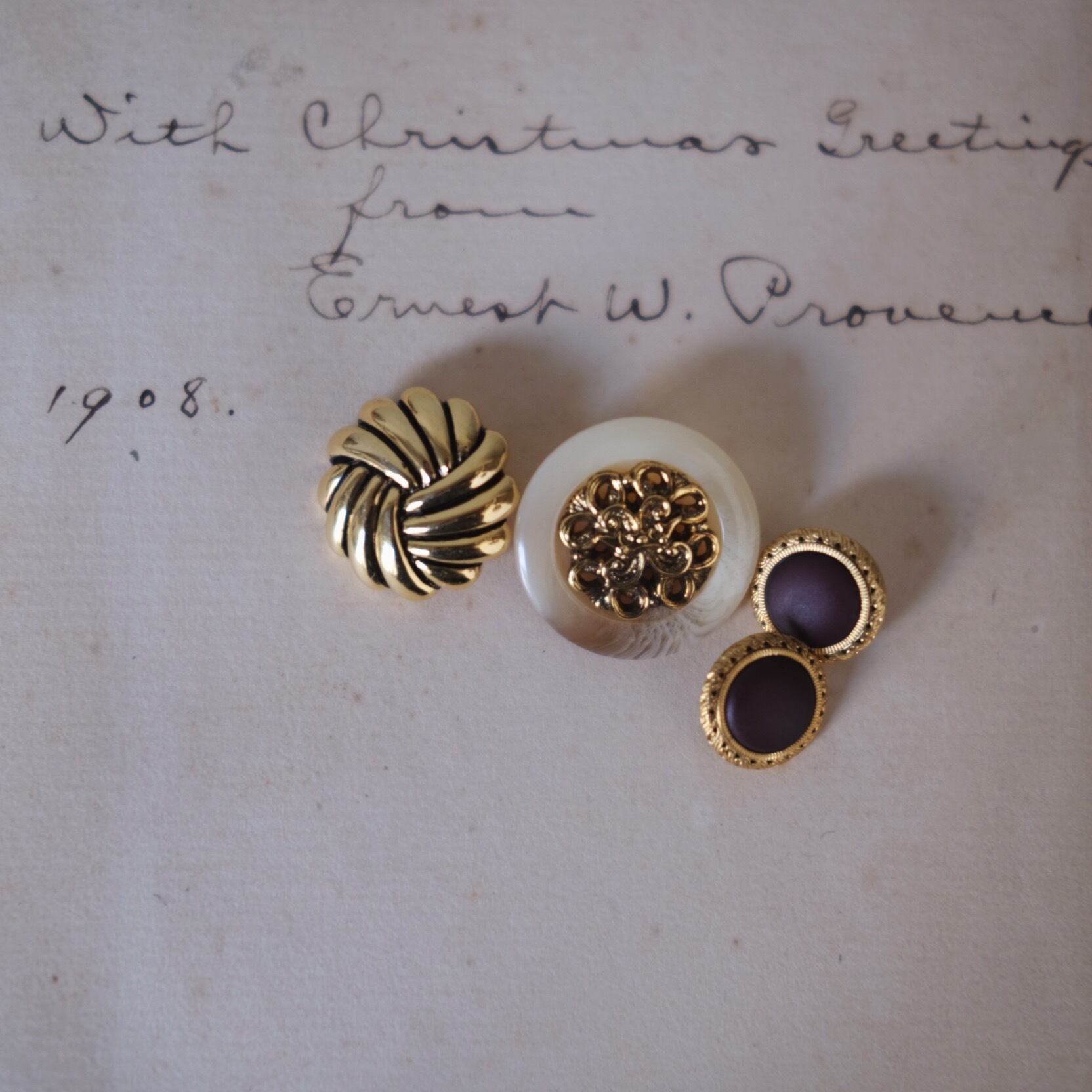ヴィンテージ ボタンの為、仕入れた時点で元々キズや色褪せなどある場合もございますので神経質な方はご購入お控え下さいませ。